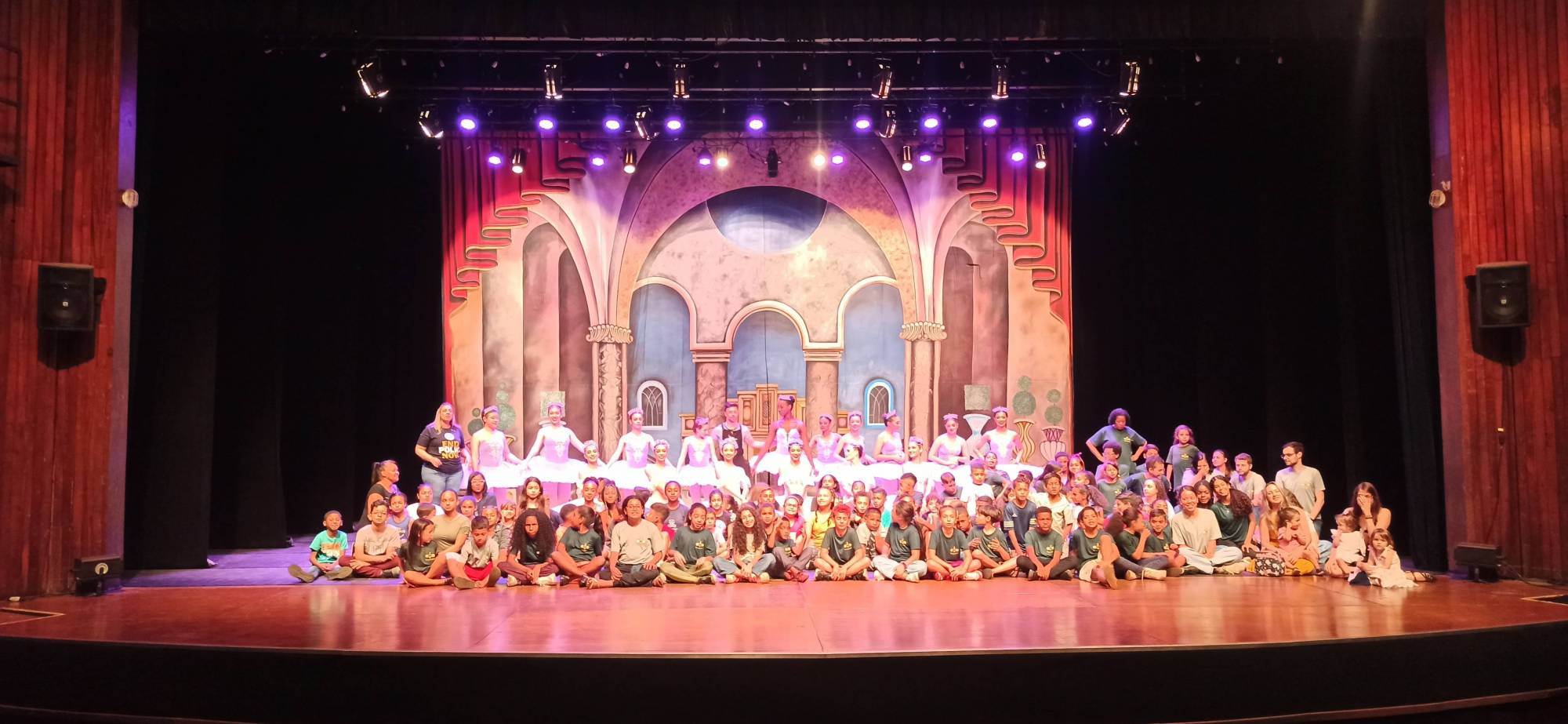 Após o espetáculo, as crianças tiveram a oportunidade de um bate-papo com as bailarinas e diretor artístico para suas curiosidades.